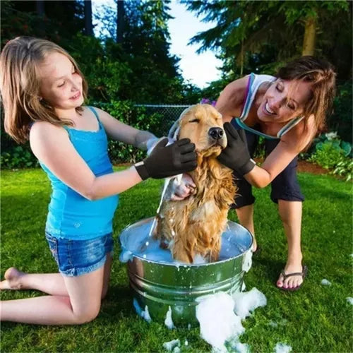 Este guante facilita el cepillado de mascotas, eliminando pelos sueltos y enredos, a la vez que masajea suavemente la piel, promoviendo un pelaje más saludable y brillante.